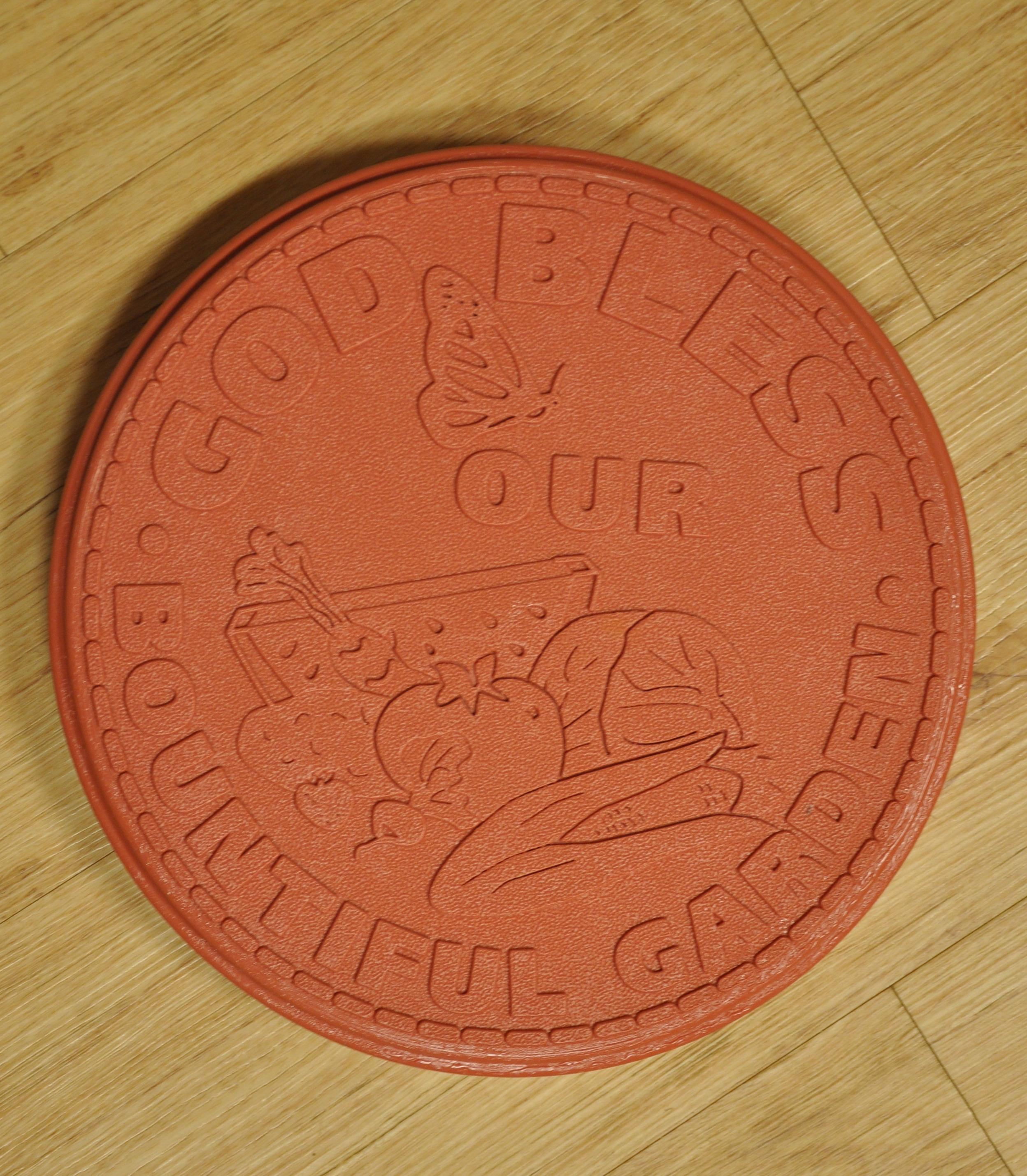 This resin stepping stone is designed to withstand weather and foot traffic. Textured surface to provide great traction, even when wet. Once piece molded, textured surface. Colors: Granite or Terra Cotta. Stepping Stone Diameter: 11" Thickness: 1.5" Set of 10 All 3 designs available in both colors
