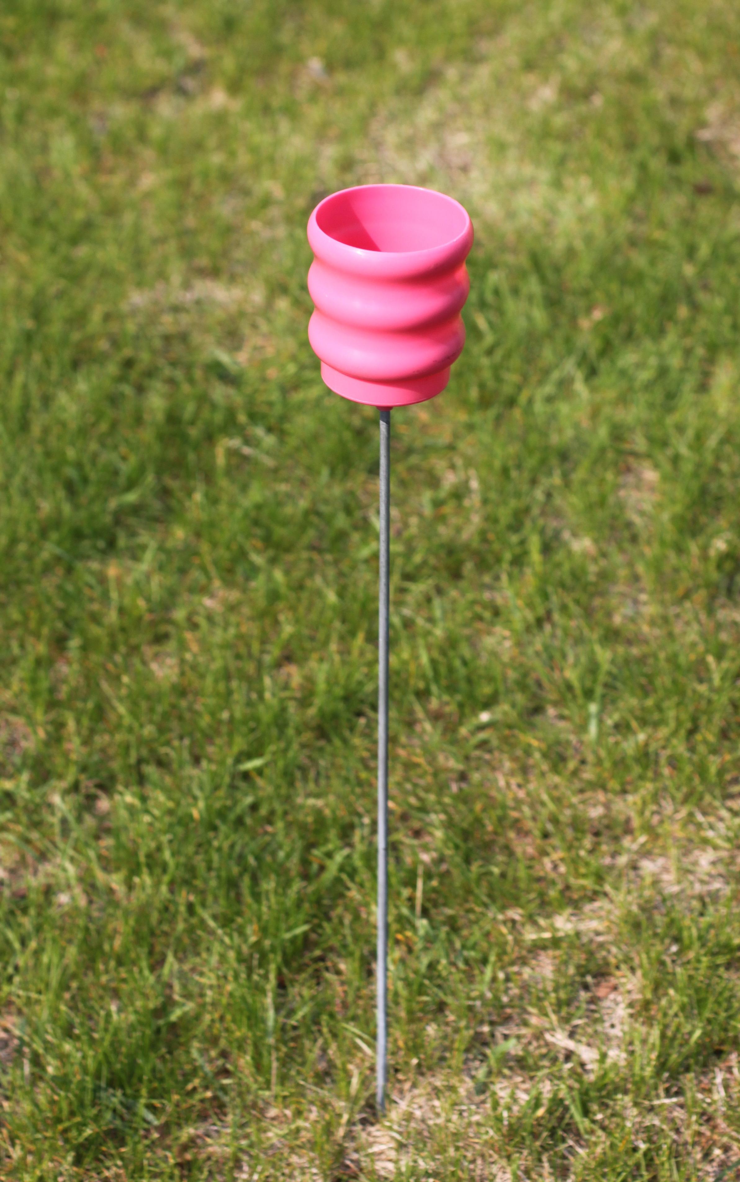 This uniquely shaped cylinder on a sturdy steel rod is great for campfires and outdoor parties. One-piece plastic molded with drain holes. Holder Diameter 3.5", Overall Height 26.5" Set of 12